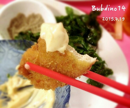 魚卵的酥酥外皮做的厚厚的,沾著特製沙拉醬,好吃!!外面好像很少有酥皮這麼厚的?